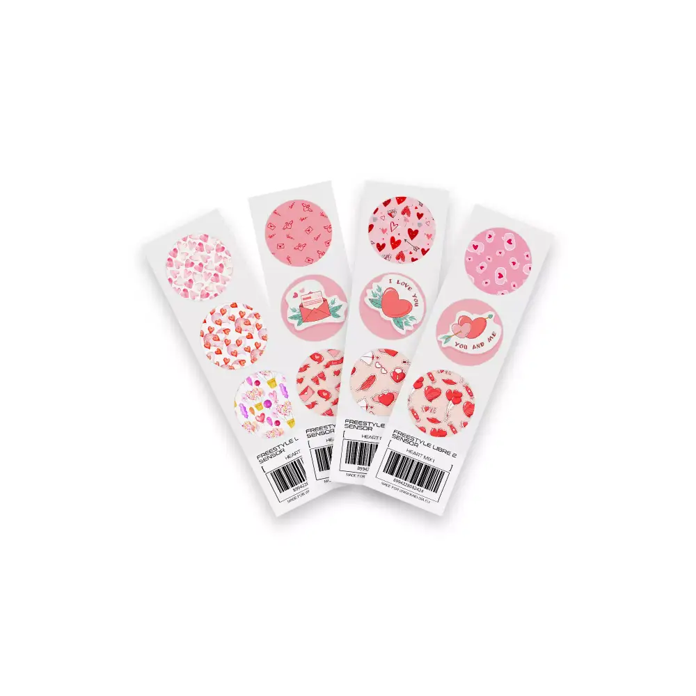 バレンタインデー2024シリーズのステッカーで、あなたのFreestyle Libreセンサーに愛の輝きをプラスしましょう!