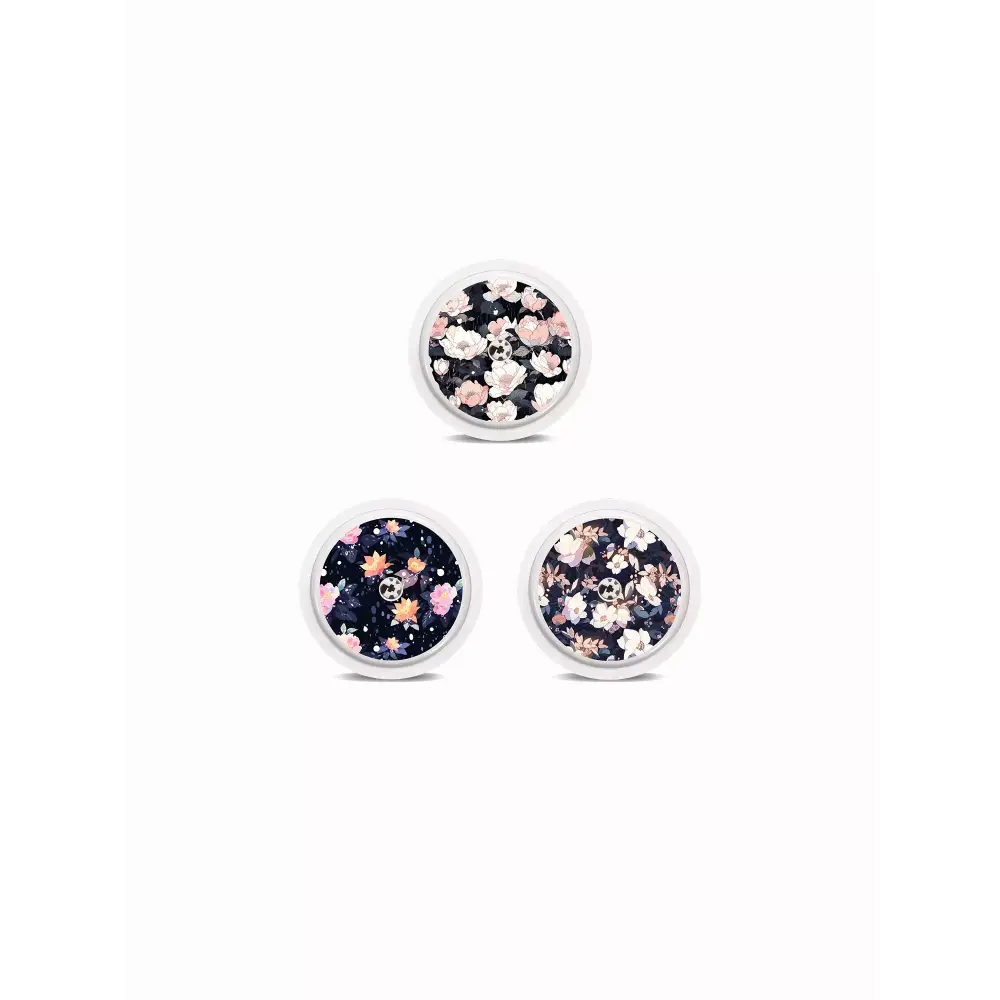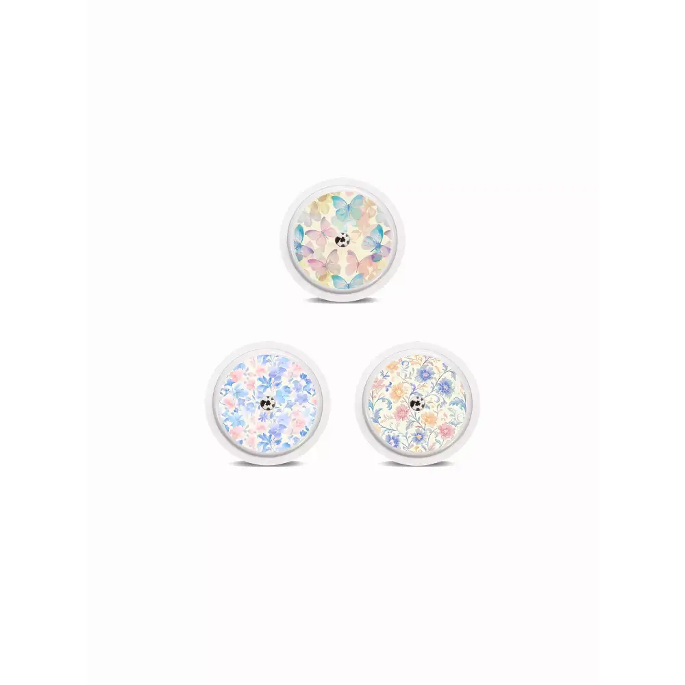 ブロッサム・チャーム・セットは、活気あるパープル、ピンク、オレンジの色合いで遊び心のある花柄をデザインし、楽しくエネルギッシュな印象を与えます。Everbloomは、柔らかなパステルカラーの蝶と繊細な花柄が特徴で、軽やかでエレガントな印象を演出します。洗練された永遠の美学を愛する方には、ダークな背景に深みのある花柄をあしらったFleurishがおすすめです。Freestyle Libre 2用のステッカーは、シームレスにフィットするよう精密にカットされているため、貼り付けが簡単で手間がかかりません。日常の摩耗からセンサーを保護し、完全な機能を維持するように設計されており、簡単にスタイルを表現できます。